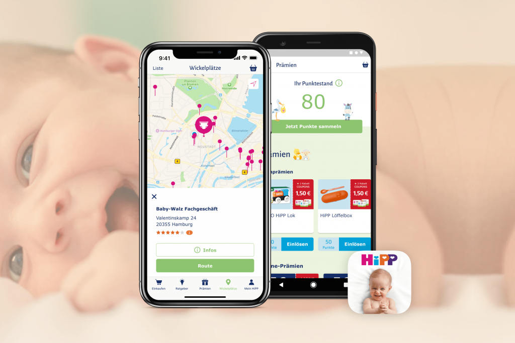 Die App wurde komplett überarbeitet und bietet eine verbesserte User Experience. Das User Interface ist modern gestaltet und fügt sich nahtlos in das Corporate Design von HiPP ein. Somit harmoniert die App ausgezeichnet mit den weiteren HiPP Apps, die ebenfalls von uns umgesetzt wurden.